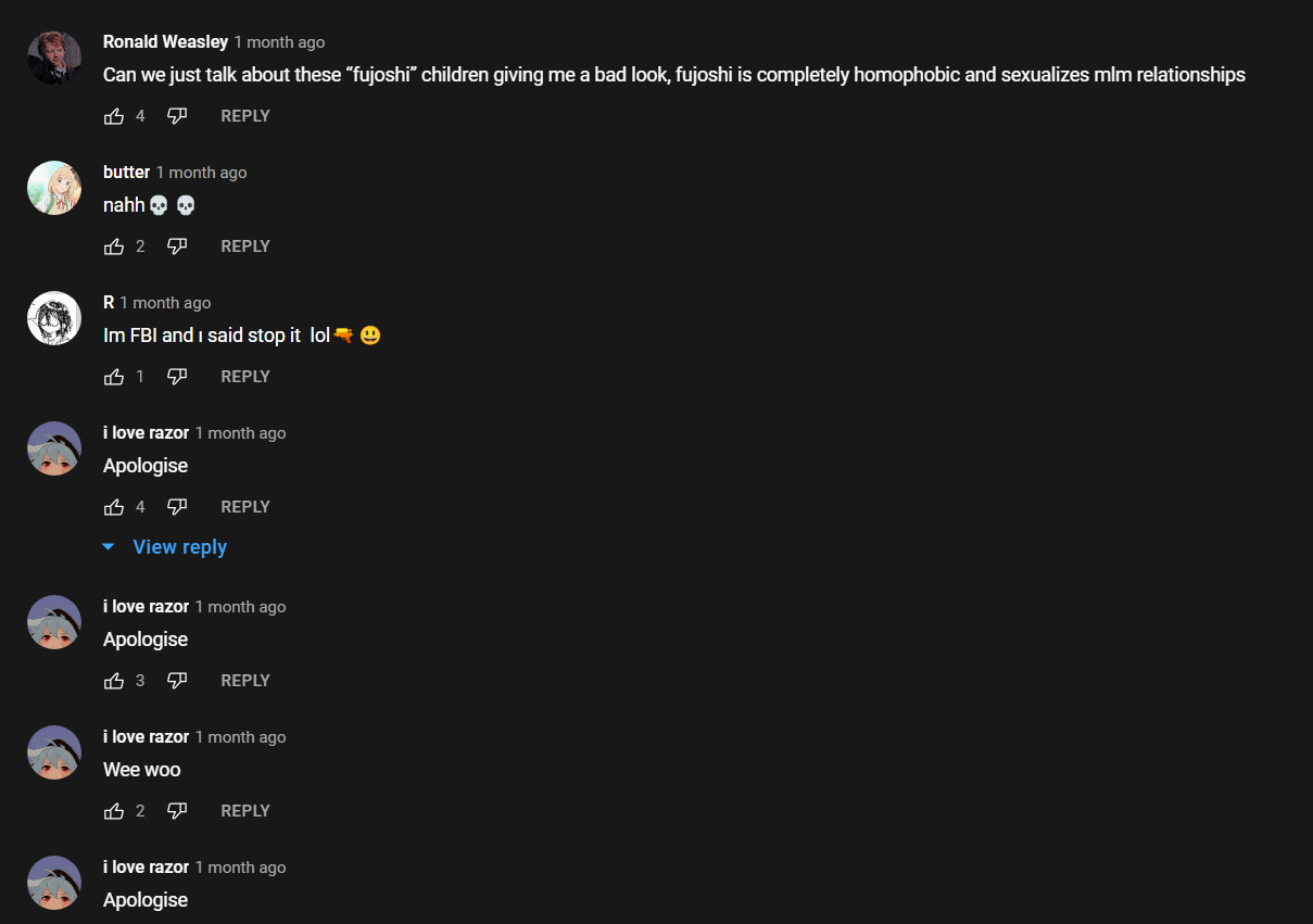 Ngl I don't follow any fujo stuff, looking through for good content means having to deal with a whole lot of