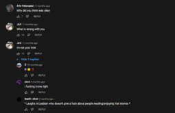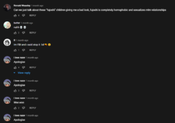 >>981>all the butthurt em el ems in the commentsLove how you can immediately tell all of these "gay men" are actually just maladjusted teenage girls, kek.