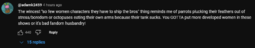 >>5278Personally, I agree with the female characters' writing being a big part of it