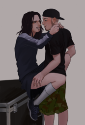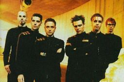 This is a fujo gold mine for someone with very particular tastes. Rammstein is a German industrial metal band made up of six members. They've been around for almost 30 years and have never had a lineup change. They incorporate elements of BDSM into their live shows and image.