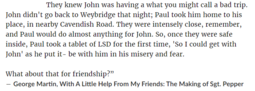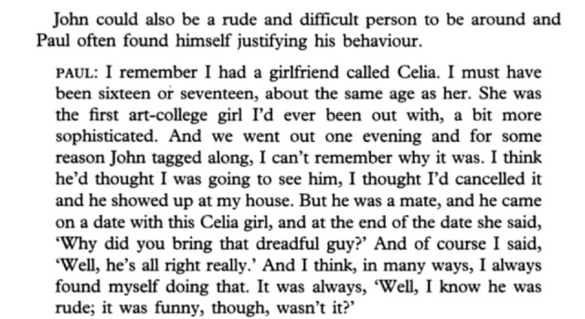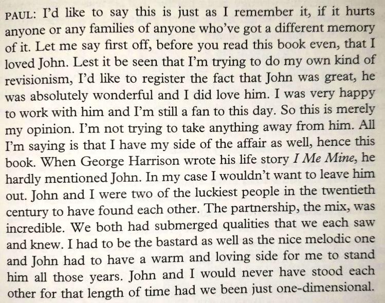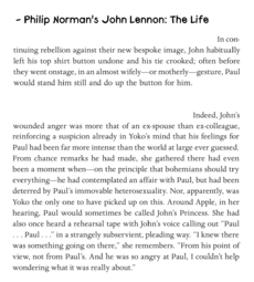 a) the author is seething coping and dilating that John's best friend was Paul McCartney and immediately uses the text to complain about what a loser he is - something demonstrably untrue since John stated on his last day of life that he loved Paul and he knew Paul loved him, and they remained best friends until the day John died.