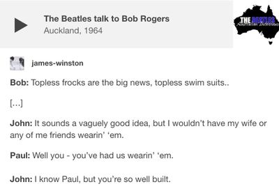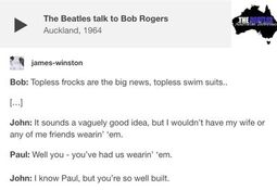>>264Hello friend! Thank you for being patient with me. Yes, pinterest is surprisingly good for Beatles stuff, I've found lots of good photos on there too. I also miss LJ though, it seems like the john<3paul community was hopping back in the day. I did join the Dreamwidth mirror and the mod accepted me right away!… but now my brain is so broken by the modern internet I can't think of anything to post there. I think I'm a hack! ;__;