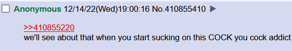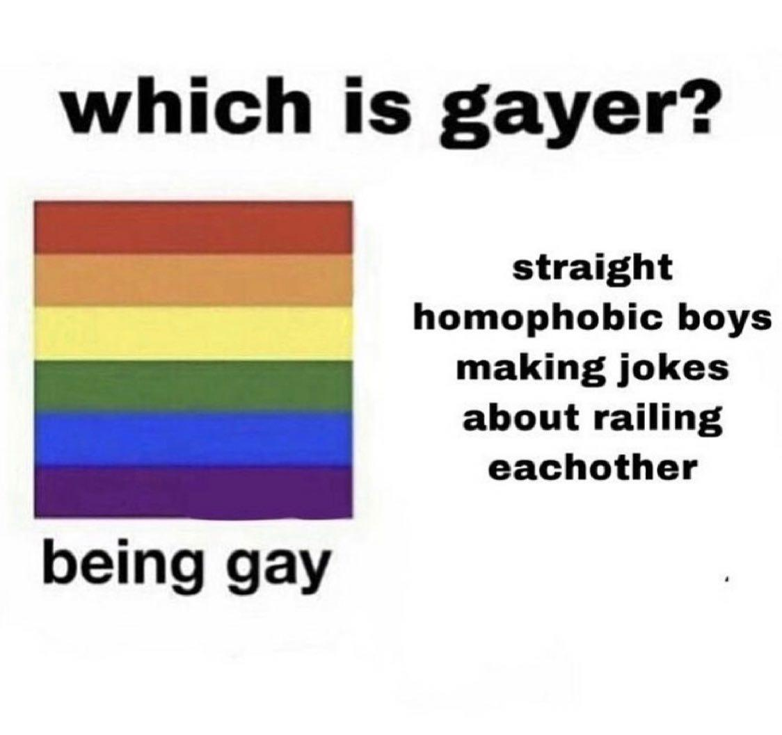 >>346Thankfully there isn't a need to look for them because the homosexual tension sometimes is so loud and visible that the only thing you need to do is leave them insult eachother and see how it turns into cock sucking.