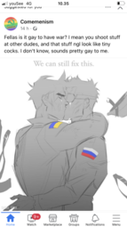 >>77>>79Holy shit did someone actually draw country gijinka yaoi or did someone just color the flags on the arms of some unrelated art? Based if it's the former.