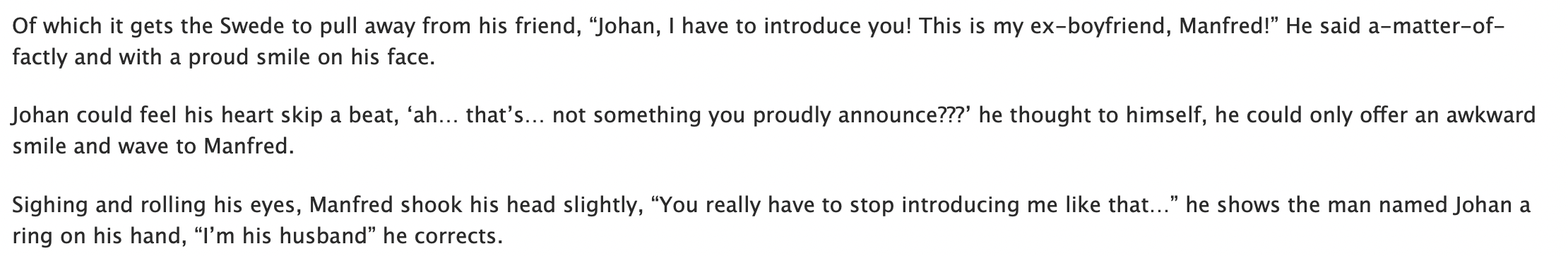 >>259That sounds kind of like a love that got confessed and then things got awkward, but it is very tempting to ship them anyway.