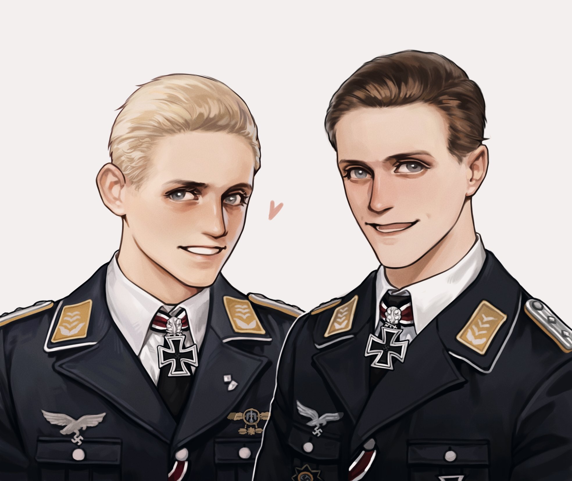 >>297Both tbh, I mostly just like to collect pics, learn about real life qt reich boys and consume fanfic/art. I like the luftwaffe boys the most, Marseille and Hartmann (pic is rare fanart with both) and some others. Some people ship the high ranking nazis like Himmler and Heydrich but they are too ugly for me kek. There are some related WWII media that have their own small overlapping fandoms. I recommend watching Napola/Before the Fall if you haven't, it's amazing and very fujobaity.