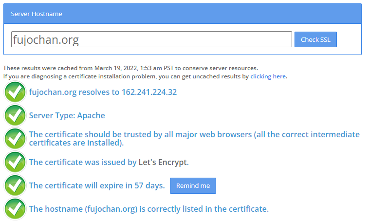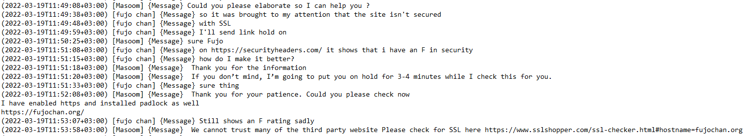 Pic related is from tech support chat logs and the SSL checker that was given too. Will actively update SSL after it expires.
