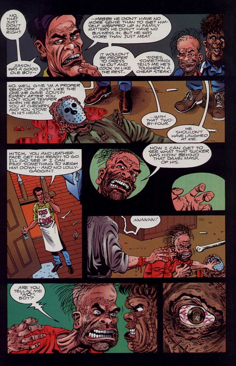 Yo, Jason VS Leatherface! I read this ages ago! Didn't expect to see it dumped on this board of all places, I remember it being kind of hard to find. Based taste.