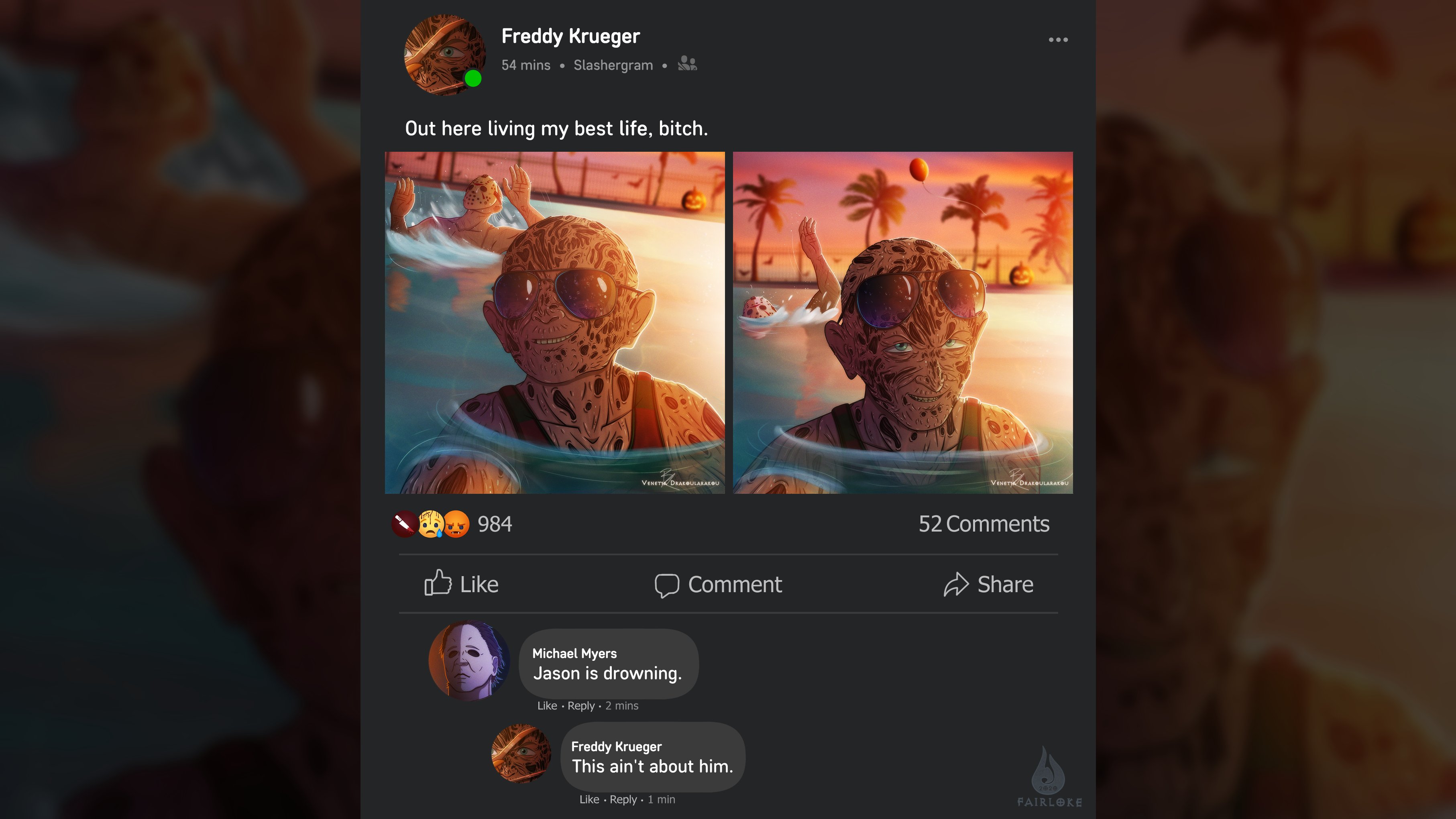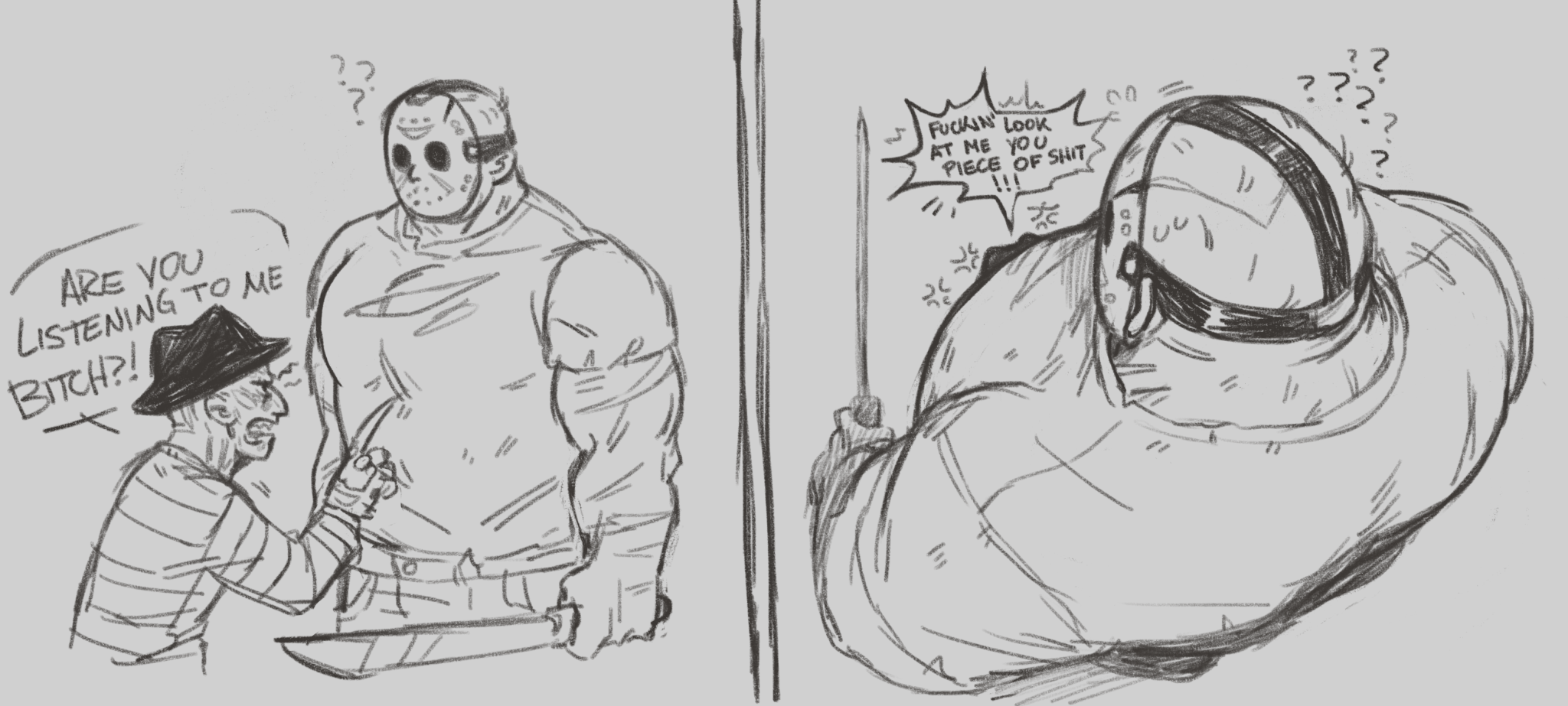 >Do you ship him with any other movie monsters or any Camp Crystal Lake attendants? He's my favorite shasher and one of my main husbandos, but I don't ship him with anyone in particular. I like most stuff with him in it!