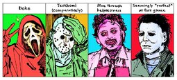 >>154reminder that Micheal Myers is canonically stated to have an angelic face, so compared to traditional slashers he's actually the most conventionally attractive behind the mask