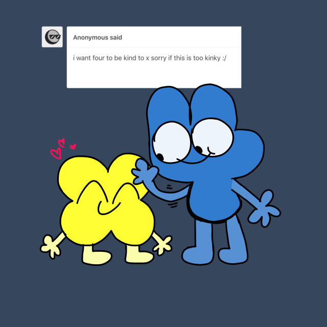 >Favorite shows and ships?Currently super into various object shows, especially BFDI. FourX is LOVE ♥