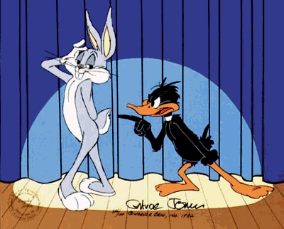 As for DafPork in particular I like it best and prefer it to DafBugs because of how it ties perfectly into the history of the studio. While they had other stars before Porky, like Bosko and Buddy, Porky was the first "Big" hit they had and the characters that ended up being their mascot of sorts. When you factor in the idea of the characters being actors and the shorts being their works you've got a rising star. Then Daffy comes along and blows Porky out of the water in popularity, they star together for a while but tensions behind the scenes are high over who is the true star, eventually though Bugs comes along and eclipses both and it's not even close. During this time you also see the switch from Clampett's goofy off the walls Daffy to Jone's sarcastic duck. I like to think the in-universe explanation is bitterness over Bugs. Anyway suffice to say I like the idea of Porky and Daffy bonding over the memories of better times and both mutually disliking all these "young" actors. Daffy is again more openly bitter and Porky reels him back in.