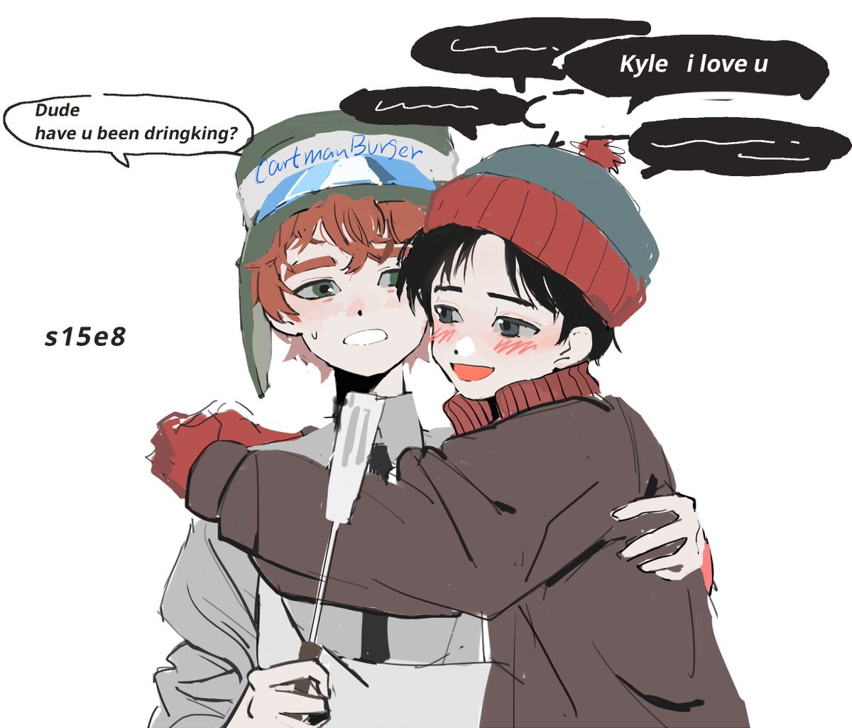 >>1087>I'd kill for a few more slightly more serious Kyle/Cartman moments.Me, too. Like you said, their dynamic (even without the shipping goggles) is easily one of the most entertaining parts of the show. I know it's a little silly for me to be talking about character depth in South Park, but I also think they have more depth to them, which means that there's more to explore in regard to their relationship (not even talking about shipping- I just mean in regard to how they normally interact). They don't feel as one-note as Randy or something because there is such a diversity to the interactions we've seen between them and the roles they take in particular episodes. I can think of episodes where Cartman brings out the worst in Kyle, where Kyle fucks up because of his pride, where the two actually get along to work toward a common goal, where Kyle's the more reasonable one, etc. Yet, all of these episodes make sense because they're not entirely flat characters. Their episodes together work SO WELL because they have the right amount of balance for each other; they have enough similarities, but also contrast, that it doesn't get tiresome. There's basically a built-in conflict when Cartman and Kyle are the center of a particular episode, so it makes no sense not to capitalize on that.