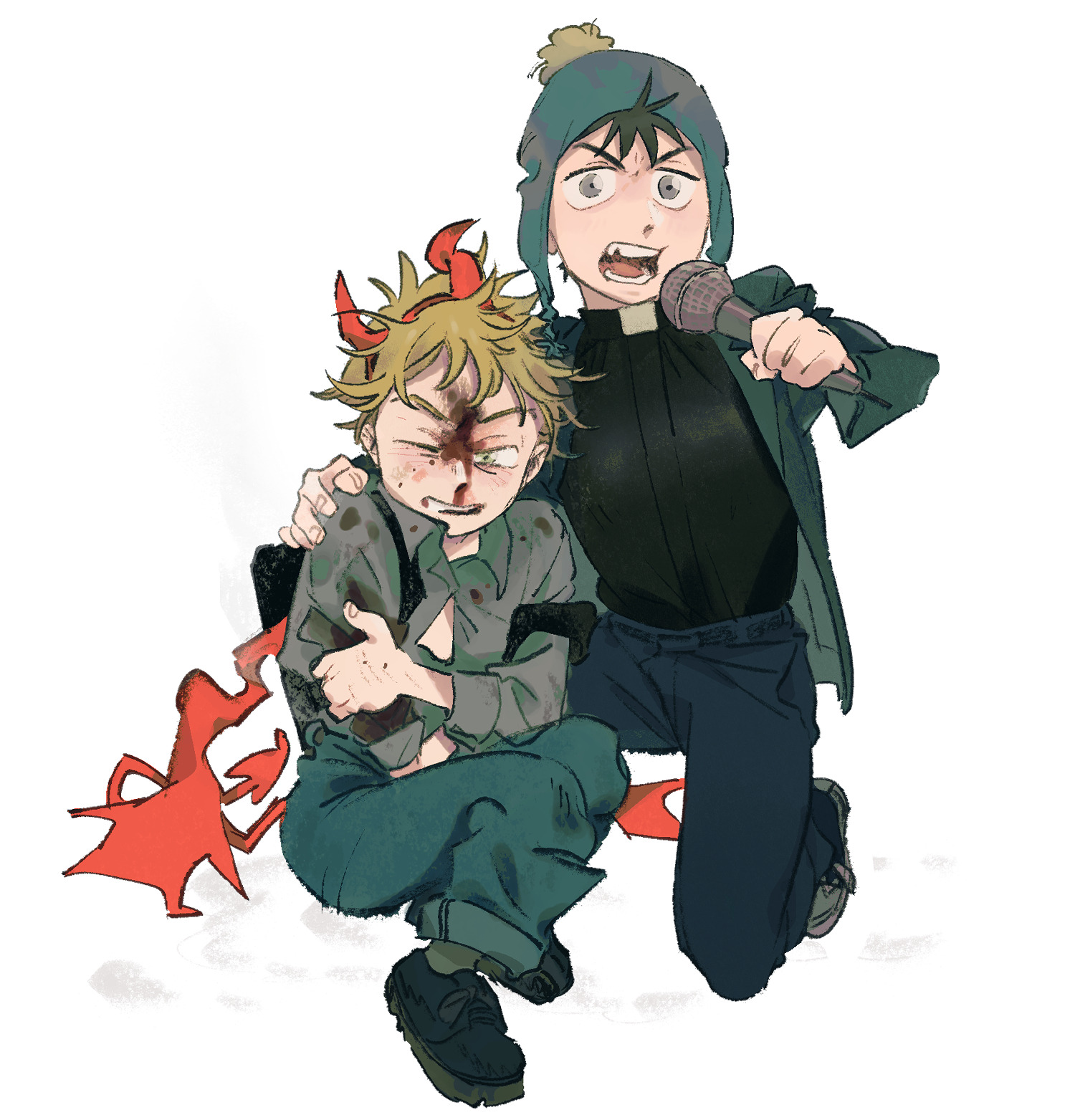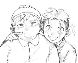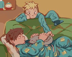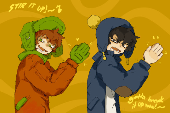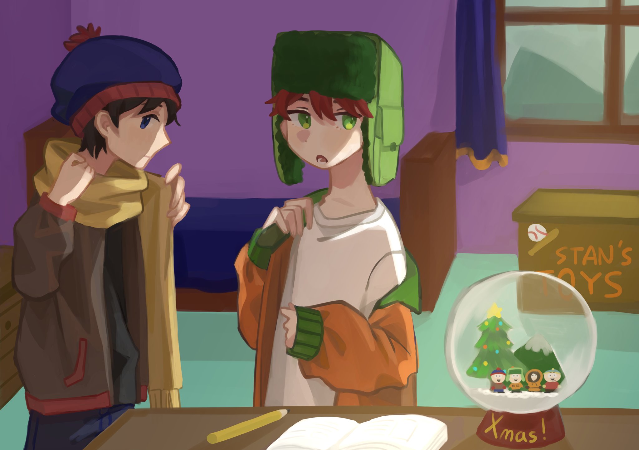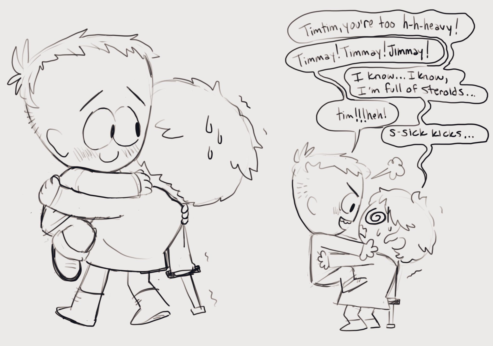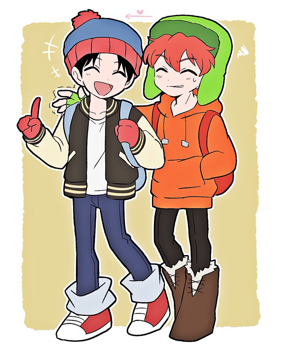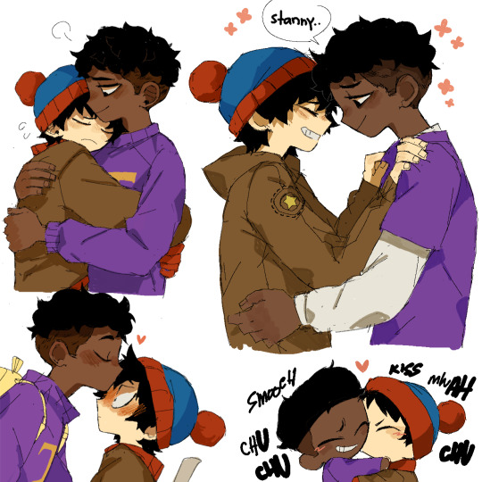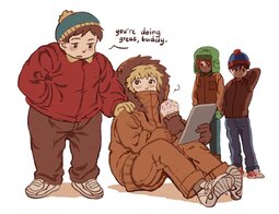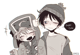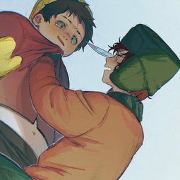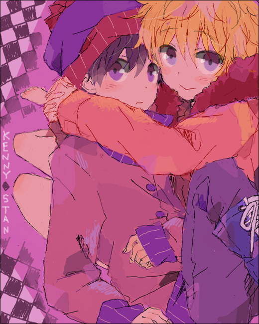 >otpstenny! it is such a cute pairing, i like the dynamic of stan being a bit protective over kenny, and that flipping when they're super heroes. they're also good for hurt/comfort fics which are my favorite kind.
