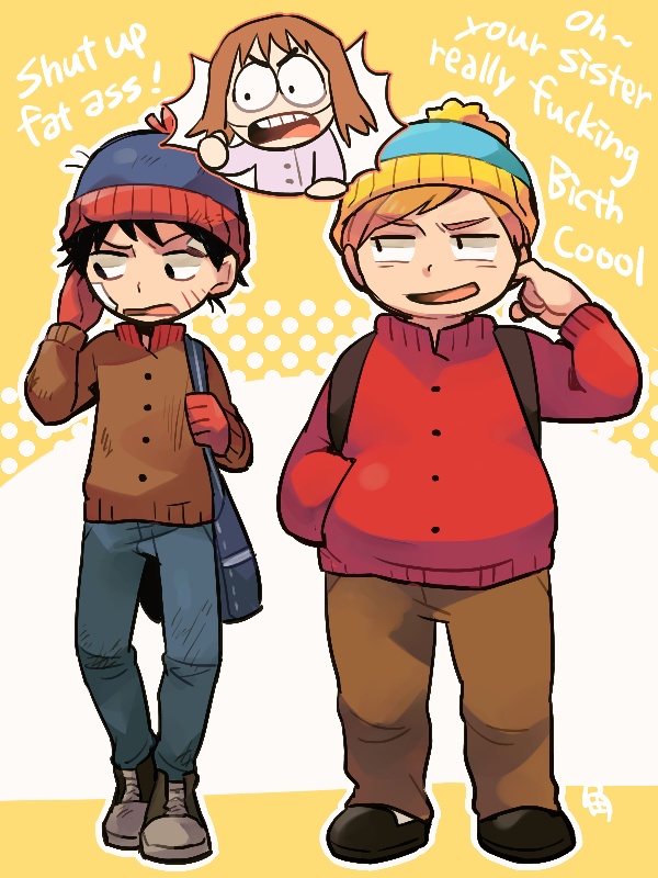 One of the things I find funniest about the South Park fandom is the angsty fanfics where everything is now Serious Business, the absurd shit from the show is played for angst, and the characters are in high school or adults. I hate these fics, but they make me laugh so hard. It's like Riverdale but with the South Park characters.