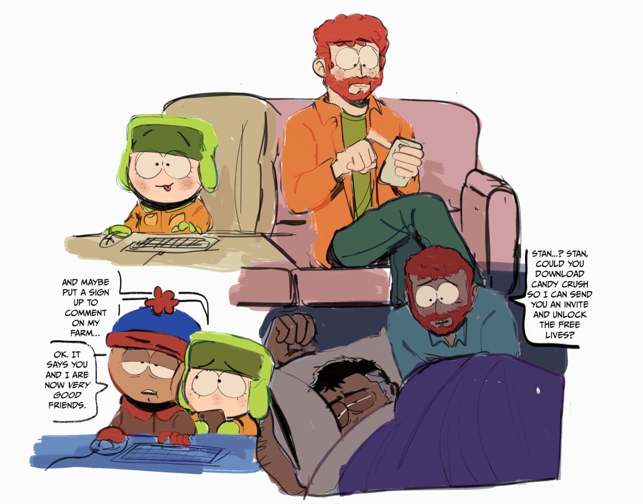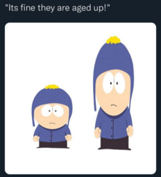 I'm a bit rusty on my South Park shipping. Man, I remember reading so much on FF.Net, LJ and dA. The era I remember is reaching the point where so much is purged for being problematic and the artists not wanting to get cancelled.