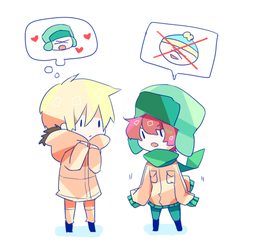 >I also think Butters/Kenny has interesting potential with a the Mysterion/Chaos angle.It's so funny because they're actually really cool with each other when they're not playing superheroes. One minute Kenny's going with Butters to Hawaii to support him because they're best friends, the next they're beating the fuck out of each other because Butters is trying to blow up a hospital. It's gold, really. You've got good taste!!