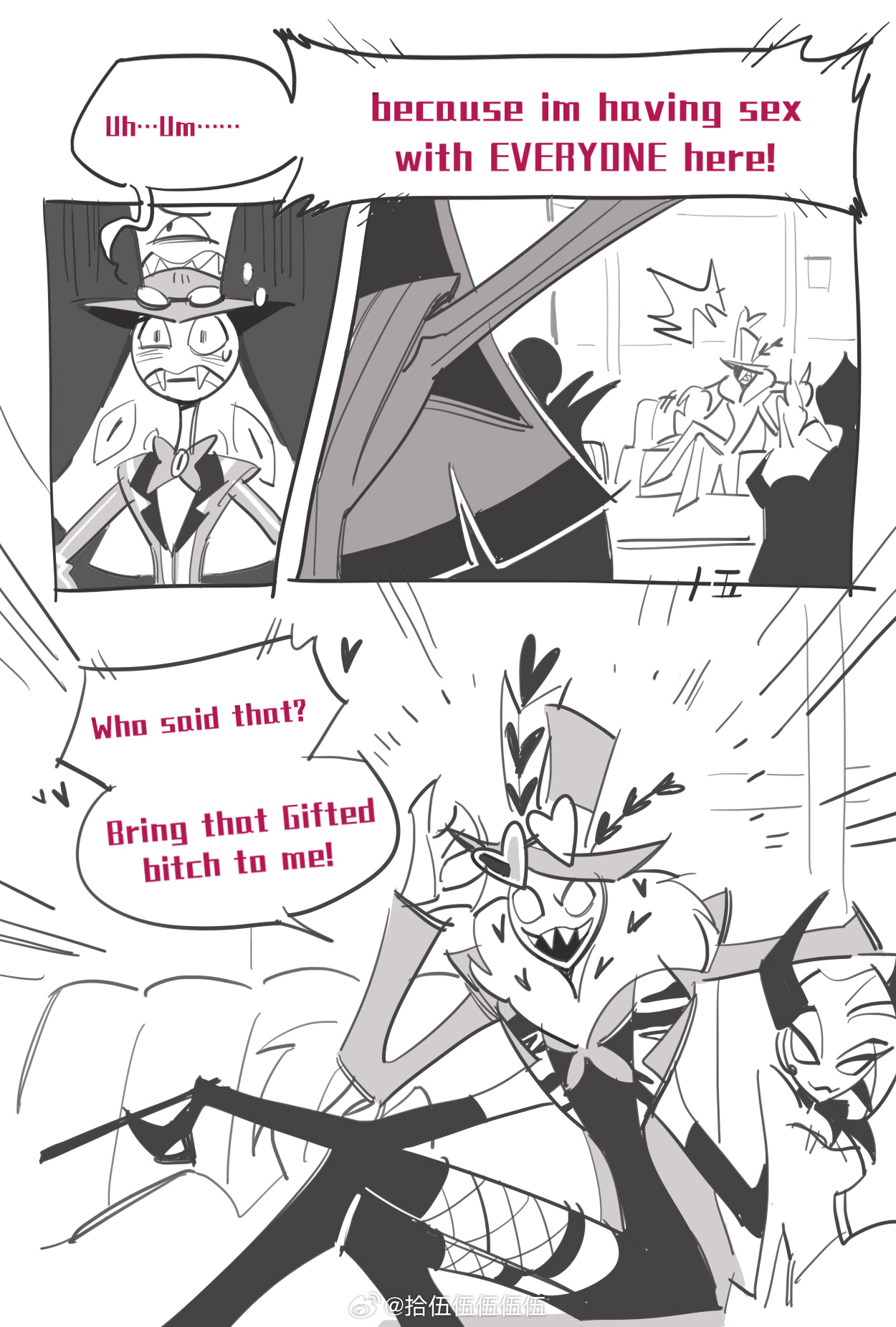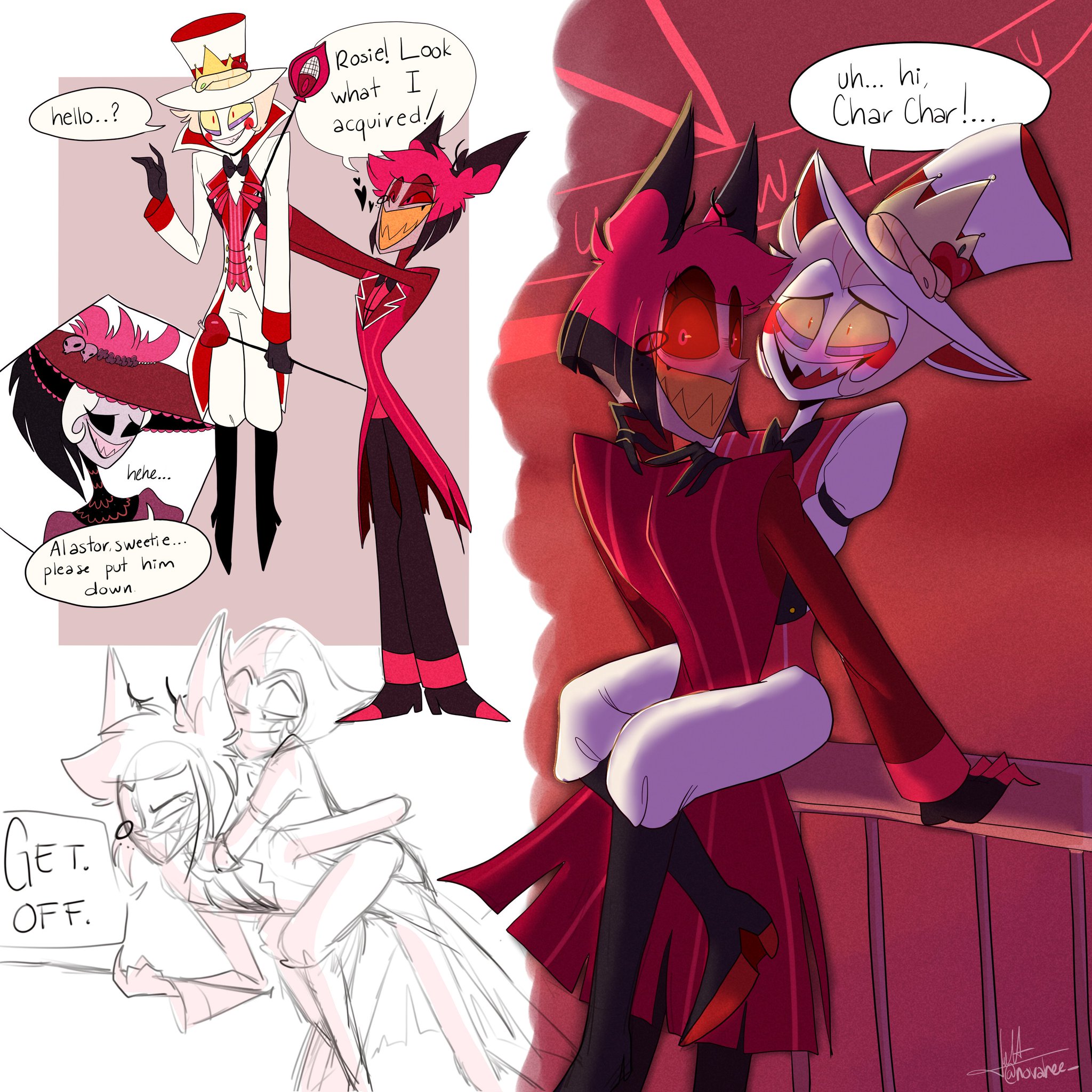 Not really into ships much but I think the tension between Alastor and Vox or Lucifer is cute