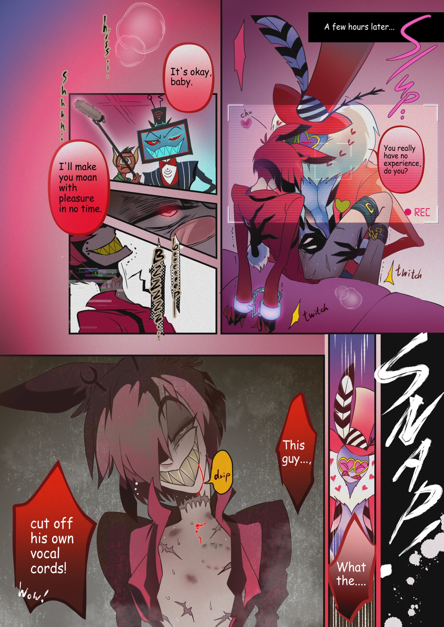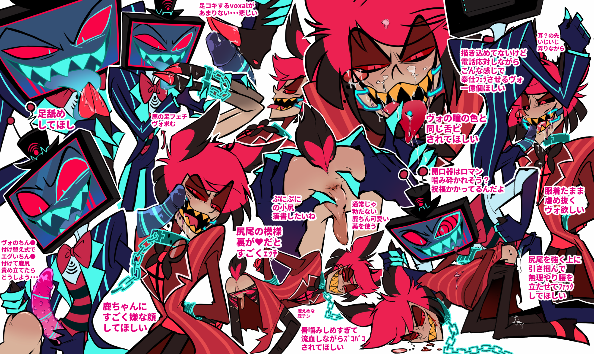 >>858I wish it was easier to have fun English language fandom stuff, I forgot it could even be this fun. Also, ayrt, I think Vox ragefaps and then copes by pretending it didn't happen, and w-well even if it did, it's just because he was jacking off to relax after getting pissed off thinking about Alastor, so he was thinking of how mad Alastor makes him, NOT how bad he wants him, and really it's all that damn Alastor's fault for pissing him off to begin with reeeeee. This just makes him ragefap more though kek. I bet he punches walls over it