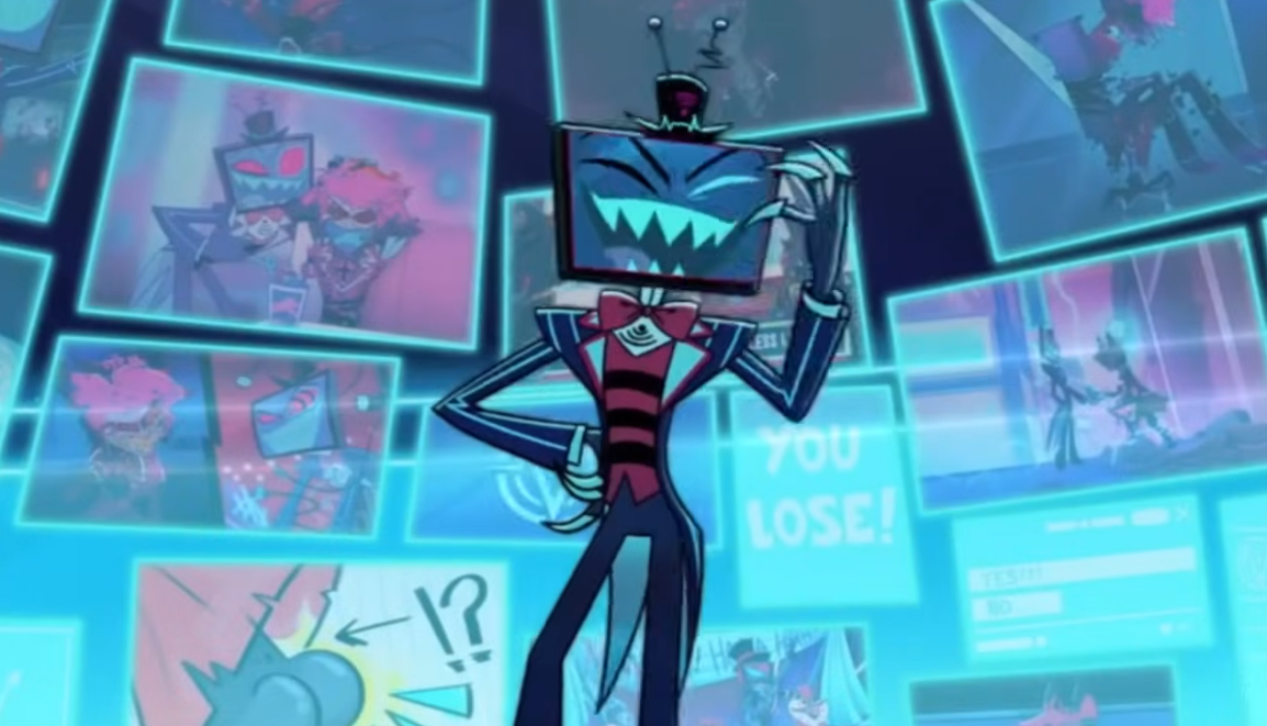 television falls on his head was really cool and I like how it paralleled the "antlers" in Alastor's flashback scene.