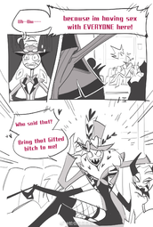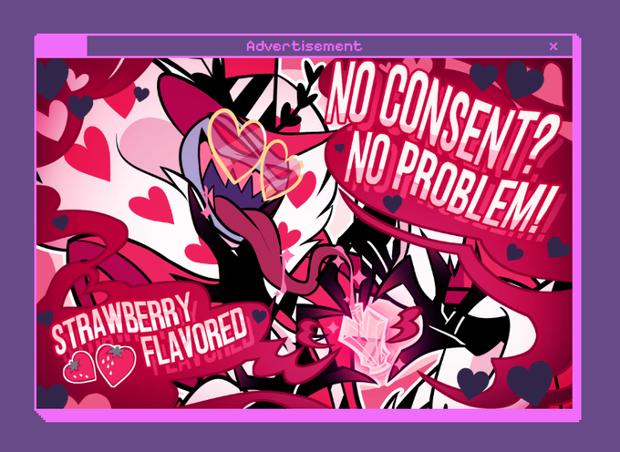 weatherman that rose up in the ranks of a news network by murdering everyone in his way rather than the cult leader backstory they gave in the promotional materials. I also really didn't like how they kind of woobified Valentino considering he stills owns and regularly rapes and pimps out Angeldust. That being said it's been fun watching Alastor yumes seethe and I hope we get some nice in-character doujins and fanfics from this season.